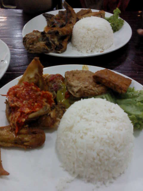 Ada nasi goreng cina, spageti goreng, ayam cili, fillet ikan bersos, wantan, udang goreng dan sayur campur.